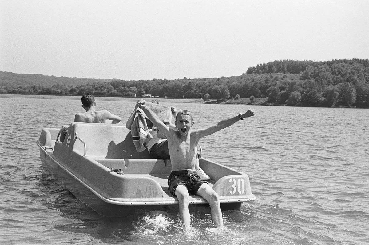 In A Day at the Lake, we're taken on a linear progression of strikingly simple black-and-white photographs. These images, while embracing a snapshot style, lean towards immediate contemplation and consideration, deliberately sidestepping nostalgic sentimentality.